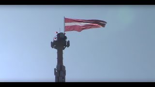 В честь Дня восстановления независимости страны впервые на даугавпилсской телебашне был установлен огромный государственный флаг Латвии.