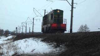 Электровоз ВЛ10У-357 с грузовым поездом. Перегон Домодедово - Белые Столбы, Московская область.