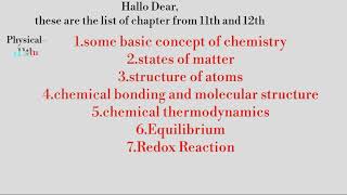 Name physical, organic, inorganic chapters of NCERT Chemistry (11th &12th)