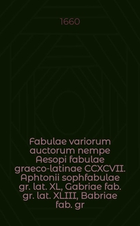 Fabulae Aesopi graecé et latiné, nunc denuo selectae: eae item, quas Avienus carmine expressit : accedit Ranarum et Murium pugna, Homero olim asscripta. Accedit Ranarum et Murium pugna, Homero olim asscripta