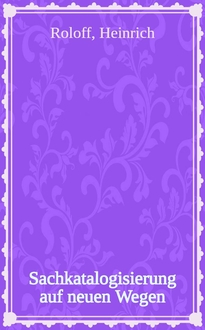 Sachkatalogisierung seit Trebst Aschenborn : Eine Zusammenstellung der deutschen Literatur über Fragen der Sachkatalogisierung seit 1930 / Von Hans Jürgen Aschenborn; Hans Jürgen. Bd. 2:. - 1957. - 56-106 с. - (Mousaion / Universiteit van Suid Afrika. Boek- en biblioteekwese ; 16)