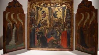 Zanino di Pietro (Bologna 1389 - Venezia 1443) "Trittico, Crocifissione tra Santi francescani" centrale cm 98.5x88.5 ali cm 94x44 tempera su tavola Chiesa del ...
