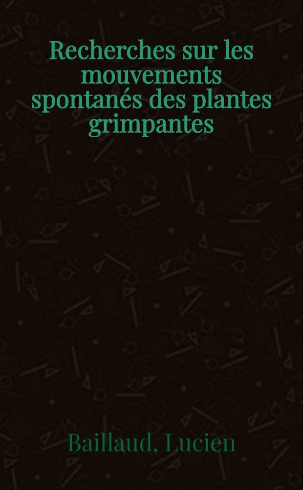 Recherches sur les mouvements spontanés des plantes grimpantes: 1-re thèse; Propositions données par la Faculté: 2-e thèse: Thèses présentées ... pour obtenir le grade de docteur ès-sciences naturelles / par Lucien Baillaud; Univ. de Besançon. Faculté des sciences