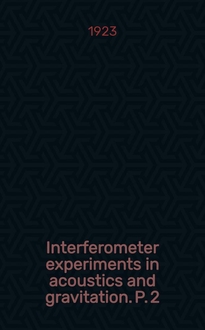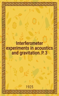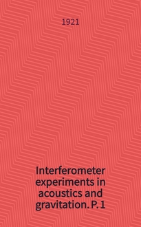 Barus C. Interferometer experiments in acoustics and gravitation / By Carl Barus, Ph. D., LL. D. - Washington, 1921-1925. - 3 т. : ил. ; 26 см. - (Publication / [Carnegie inst. of Washington ; № 310])