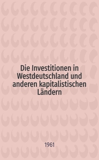 Baumgart E. R. Investitionen und ERP-Finanzierung : Eine Untersuchung über die Anlage - Investitionen als Wachstumsdeterminante des Wirtschaftsprozesses in der Bundesrepublik Deutschland und die wirtschaftspolitische Einflussnahme durch Investitionsfinanzierung aus dem ERP - Sondervermögen in empirischer Sicht von 1949 bis 1956 / Von Egon R. Baumgart. - Berlin : Duncker & Humblot, 1961. - 134 с. ; 23 см. - (Sonderhefte / Deutsches Institut für Wirtschaftsforschung . Reihe A . Forschung ; N. F. № 56). - Библиогр.: с. 131-134
