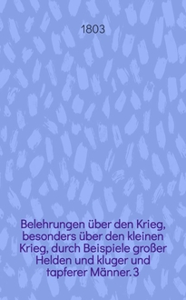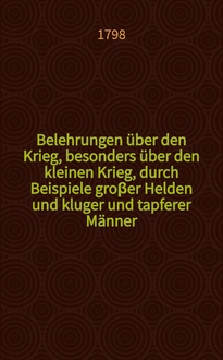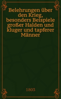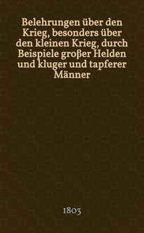 Belehrungen über den Krieg, besonders über den kleinen Krieg, durch Beispiele großer Helden und kluger und tapferer Männer. [1]