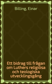 1517-1521 Billing : Ett bidrag till frågan om Luthers religiösa och teologiska utvecklingsgång / Af Einar Billing 1871-; Einar. 1:. - 1917. - (Uppsala Universitets årsskrift . Program ; 1917 [N 8] 3)