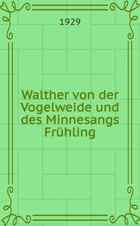 Inhalt: "Walther Vogelweide Minne" "Walther Vogelweide Linden Minne" "Walther Vogelweide Minnesang Linden" "Walther Vogelweide Lyrik" "Walther ...