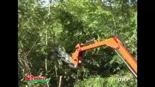 Excavator Brush Cutter Clearing Trees Raw Video - The Cyclone 48" Rotary Excavator Mower