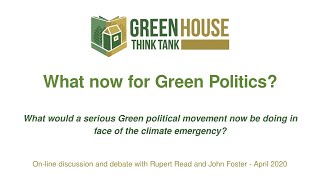 What would a serious Green political movement now be doing in face of the climate emergency? With Rupert Read and John Foster. On-line discussion and ...
