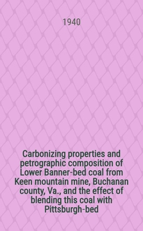 Fieldner A. C., Davis J. D., Brewer R. E. Carbonizing properties and petrographic composition of Pittsburgh-bed coal from Bureau of mines experimental mine Bruceton, Allegheny county, Pa. / By A. C. Fieldner, J. D. Davis, R. E. Brewer [a. o.]. - Washington : U. S. Gov. print. off., 1939. - IV, 43 с. : ил. ; 23 см. - (Technical papers / U. S. Dep. of the interior. Bureau of mines ; 594). - Библиогр.: с. 42-43