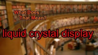 What does liquid crystal display mean? A spoken definition of liquid crystal display. Intro Sound: Typewriter - Tamskp Licensed under CC:BA 3.0 Outro Music: ...