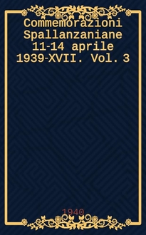 Commemorazioni Spallanzaniane 11-14 aprile 1939-XVII. Vol. 1 : Atti ufficiali