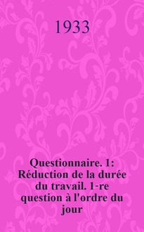 Questionnaire / Conférence internationale du travail. 20-me session. Genève, 1936. 1: , La réglementation de certains système particuliers recrutement des travailleurs : 1-re question à l'ordre du jour. - 1935