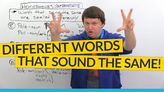 Homophones are words which have the same pronunciation but are spelled differently. In this video, you'll learn 10 intermediate-level homophonic word groups ...