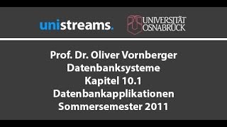 15. Vorlesung Datenbanksysteme - Datenbankapplikationen - Kapitel 10.1 - SS 11 - unistreams