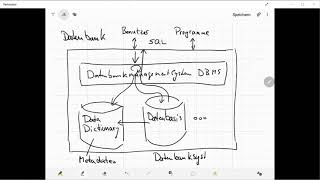 Kurze Erklärung, wie ein Datenbanksystem aufgebaut ist, mit Data Dictionary, Datenbasis, Datenbankmanagementsystem und SQL-Schnittstelle.