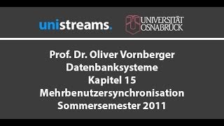 22. Vorlesung Datenbanksysteme - Mehrbenutzersynchronisation - Kapitel 15 - SS 11 - unistreams