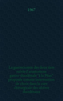 Dareys J. C. La gastrectomie subtotale et la totale de nécessité dans le cancer de l'estomac (1940-1958) : Thèse pour le doctorat en méd., présentée .. / par Jean-Claude Dareys ... - Bordeaux, 1958. - 69 с. ; 25 см. - (Université de Bordeaux. Faculté mixte de médecine et de pharmacie ; Année 1958). - Библиогр.: с. 67-68