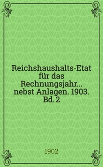 1903. Bd. I , Haupt-Etat mit dem Etatsgesetz und Anlagen I bis Va. - 1902