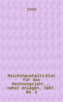 Reichshaushalts-Etat für das Rechnungsjahr ... nebst Anlagen. 1903. Bd. I : Haupt-Etat mit dem Etatsgesetz und Anlagen I bis Va