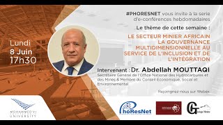 Weekly e-conference le 8 juin 2020 : LE SECTEUR MINIER AFRICAIN: La gouvernance multidimensionnelle au service de l'inclusion et de l'intégration Par: Dr ...
