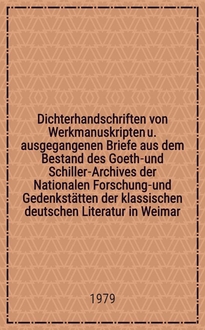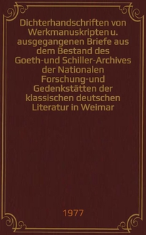 Dichterhandschriften : Werkms. u. ausgegangene Briefe aus dem Bestand des Goethe- u. Schiller-Arch. der Nat. Forschungs- u. Gedenkstätten der klassischen dt. Lit. in Weimar. Аннотация: