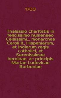 Thalassio charitatis in felicissimo hymenæo Celsissimi ... monarchæ Caroli II., Hispaniarum, et Indiarum regis catholici, et Serenissimæ heroinæ, ac principis Mariæ Ludovicæ Borboniæ, ducissæ Aurelianensis & c.