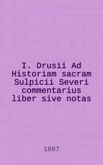 I. Drusii Ad Historiam sacram Sulpicii Severi commentrarius liber sive notas