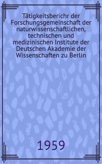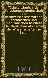 Forschungsgemeinschaft der naturwissenschaftlichen, technischen und medizinischen Institute. Tätigkeitsberichr der Forschungsgemeinschaft der naturwissenschaftlichen, technischen und medizinischen Institute der Deutschen Akademie der Wissenschaften zu Berlin / [Hrsg. vom Vorstand der Forschungsgemeinschaft der naturwissenschaftlichen, ... Inst. der Deutschen Akad. der Wissenschaften zu Berlin]. - Berlin : Akad.-Verl., 1959-1961. - 3 т. ; 24 см. - Библиогр. в конце докл.