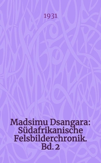 Frobenius L. Madsimu Dsangara : Südafrikanische Felsbilderchronik. - Berlin ; Zürich : Atlantis-Verlag, Cop.1931. - 2 т. : ил. в тексте и на отд. л. ; 35 см. - (Veröffentlichungen des Forschungsinstituts für Kulturmorphologie. Frankfurt a. M.)