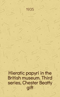 Hieratic papyri in the British museum Gardiner / Ed. by Alan H. Gardiner, D. Litt., F.B.A. 1879-1943; Alan Henderson. Vol. 1: , Text. - 1935. - 29 см