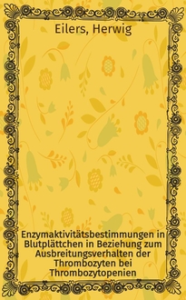 Ehmann W. Enzymaktivitätsbestimmungen in Thrombozyten, im Plasma und im Serum bei hyper- und aregeneratorischen Thrombozytopenien : Inaug.-Diss. ... [der Med. Fak.] der ... Univ. Mainz .. / vorgelegt von Wolf Ehmann ... - Mainz, 1973. - [4], 58 с. : ил. ; 21 см. - Библиогр.: с. 39-41