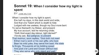 Full Explanation of John Milton's sonnet "On his Blindness"