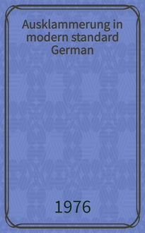 Filpus R. Die Ausklammerung in der gesprochenen deutschen Sprache der Gegenwart : [Diss.] / Raija Filpus. - Tampere : Univ. Tampere, 1994. - 284 с. : ил. ; 25 см. - (Acta Univ. Tamperensis . Ser. A ; Vol. 423 [0496-7909]). - Библиогр.: с. 271-279