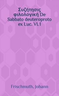 ... Συζήτησις φιλολογική De Sabbato deuteroproto ex Luc. VI. 1