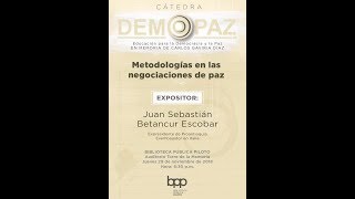 Cátedra Demopaz. Metodologías en las negociaciones de paz. 29 Noviembre de 2018. Expositor: Juan Sebastián Betancur Escobar. Organiza: Fundación ...