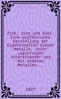 Hofmann W. Blei und Bleilegierungen : Metallkunde und Technologie / Von Dr.-Ing. ... Wilhelm Hofmann ...; Mit einem Geleitwort von Dr.-Ing. ... Heinrich Hanemann, ... Prof. ... - Berlin : J. Springer, 1941. - X, 294 с. : ил. ; 24 см. - (Reine und angewandte Metallkunde in Einzeldarstellungen ; 6). - Библиогр.: с. 261-280