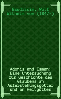 Baudissin W. W. von Adonis und Esmun : Eine Untersuchung zur Geschichte des Glaubens an Auferstehungsgötter und an Heilgötter : Mit 10 Taf / Von Wolf Wilhelm Grafen Baudissin. - Leipzig : I. C. Hinrichs'sche Buchhandlung, 1911. - XX, 576 с., 10 л. ил. : ил. ; 25 см Экспертное мнение