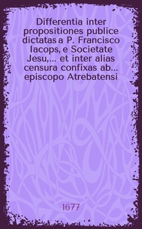 Differentia inter propositiones publice dictatas a P. Francisco Iacops, e Societate Jesu, ... et inter alias censura confixas ab ... episcopo Atrebatensi