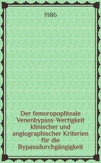 Jeschke V. Der femoropopliteale Venenbypass : Wertigkeit operationstaktischer u. operationstechn. Kriterien für den Operationserfolg : Inaug.-Diss / Von Vera Jeschke. - [Erlangen ; Nürnberg], [1987]. - [6], 180 с. : диагр. ; 21 см. - Библиогр.: с. 120-150