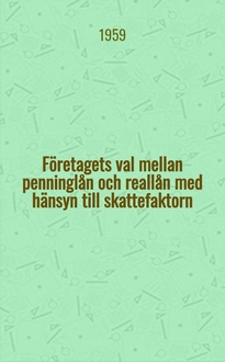 Johansson S. E. Företagets val mellan penninglån och reallån med speciell hänsyn till skattefaktorn. - Stockholm, 1959. - [6], 77 с. ; 24 см. - (Företagsekonomiska forskningsinstitutet vin Handelshögskolan i Stockholm . Meddelande ; № 59)