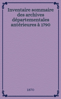 Collection des inventaires sommaires des archives départementales publiée sous la direction du Ministère de l'instruction publique