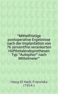 Krach G. J. R. Mittelfristige Ergebnisse nach zementloser Implantation von Totalendoprothesen der Hüfte mit dem Judet-Modell : Inaug.-Diss / Von Günter Johann Rudolf Krach. - [Erlangen-Nürnberg], [1987]. - [3], 55 с. : ил. ; 20 см. - Библиогр.: с. 45-54