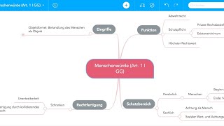 In der Vorlesung bespreche Art. 1 GG anhand des Schemas Funktion, Schutzbereich, Eingriffe und Rechtfertigung (Aufzeichnung vom 20.4.2020). Die Mindmap ...