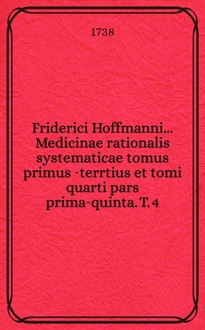 Friderici Hoffmanni Medicinae rationalis systematicae tomus prior[-terrtius et tomi quarti pars prima-quarta]. T. 3 : Quo vera therapiae fundamenta medendi methodus et leges tam naturae quam artis, nec non selectissima remedia ...