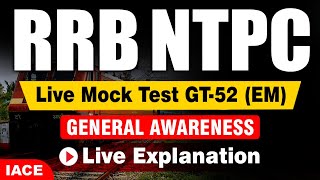 RRB NTPC Live Mock Test - 52 (EM) Live Explanation | General Awareness | IACE