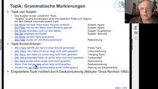 Kapitelmarken zum Springen: 0:56 Lernziele 1:23 Eigenschaften gesprochener Sprache 10:50 'weil' im gesprochenen Deutsch 29:16 Von der Sprechakttheorie ...