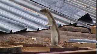 En vessla hälsar på vid bygget.