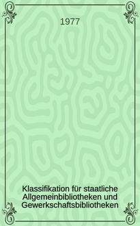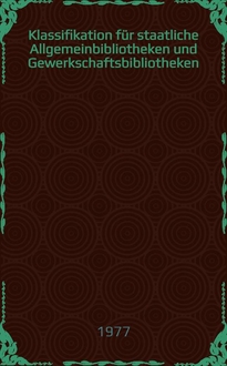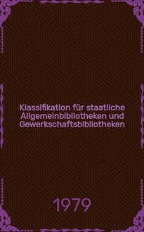 Heß I., Ingrid Klassifikation für Staatliche Allgemeinbibliotheken und Gewerkschaftsbibliotheken : Kinderliteratur / [Erarbeitet von der Arbeitsgruppe zur Erarbeitung der KAB/K beim Zentralinst. für Bibliothekswesen: Ingrid Heß, Isolde Hilbig, Eva Mühl et al.; Gesamtred.: Dr. Irmgard Dreßler]. - Berlin : Zentralinst. für Bibliothekswesen, 1979. - 34 с. ; 20 см